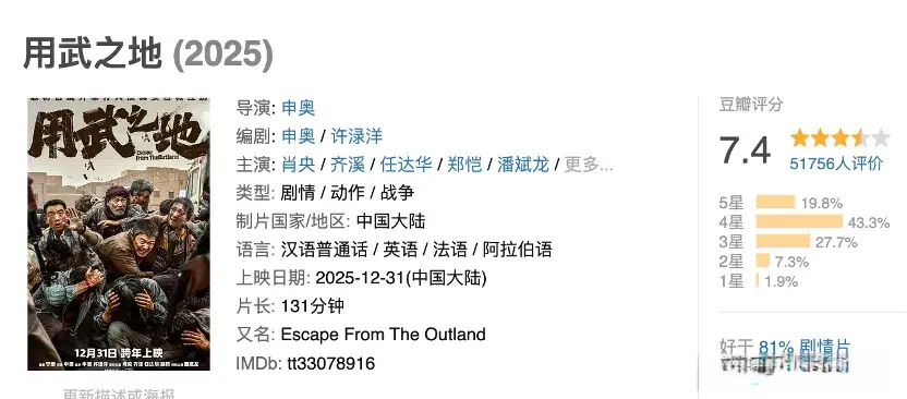 其实《用武之地》的口碑还算是不错,豆瓣开分7.6分,过了两周之后还是维持在7.4分,看过的观众们都抱怨电影看得很憋屈郁闷,但是无争议的是,申奥的完成度挺高,他的专业基本功是稳的。