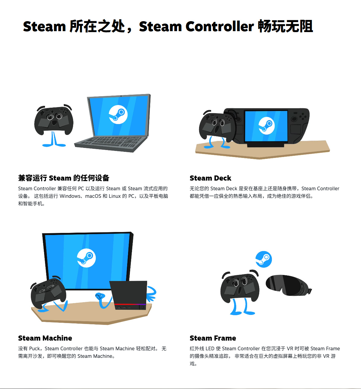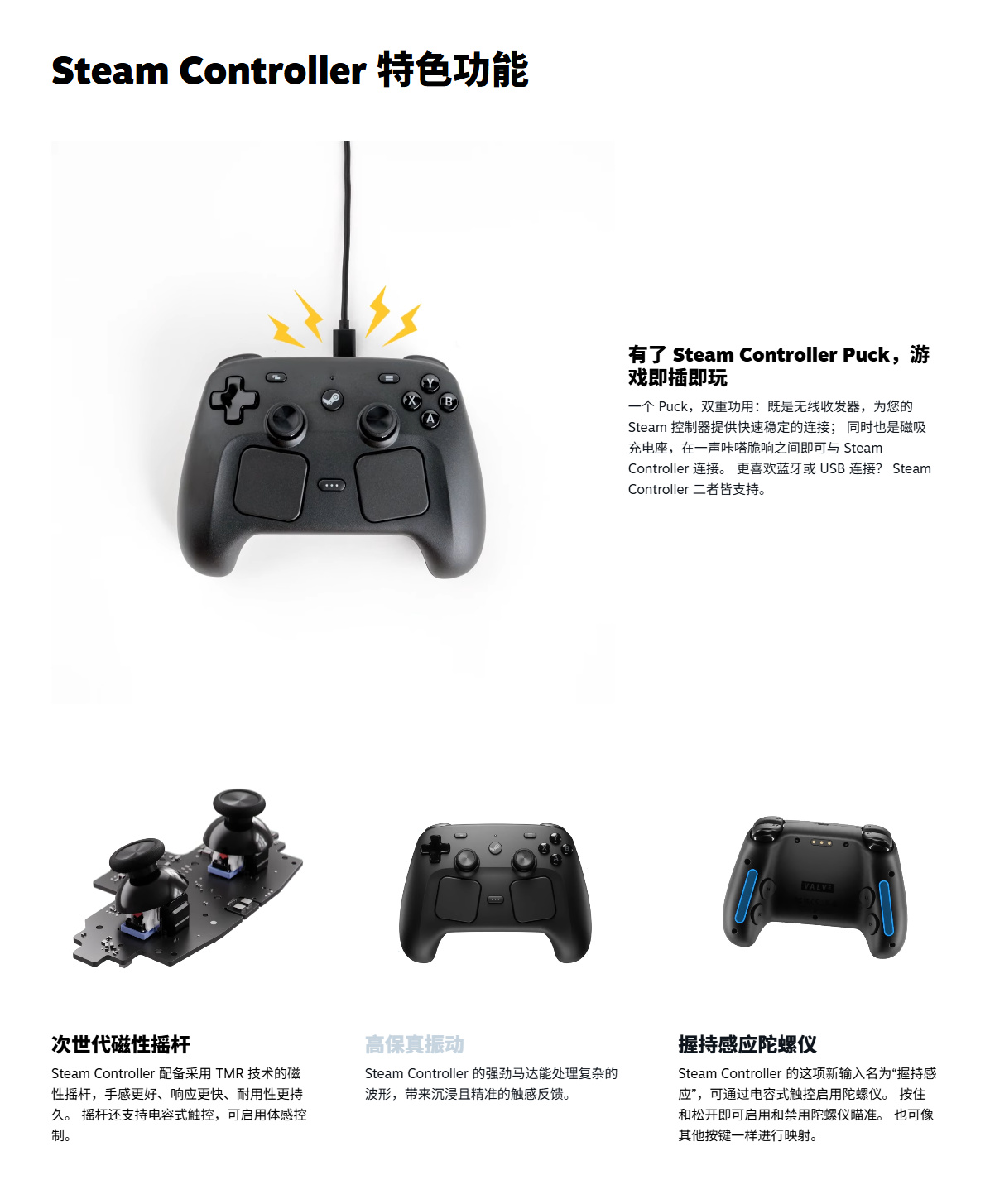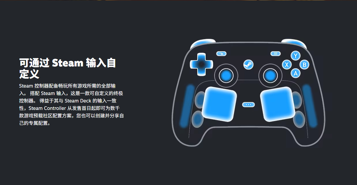 1、Steam Controller专为Steam打造,可通过Steam输入进行配置。以您喜欢的方式畅玩所有游戏,PC、笔记本、Steam Deck、Steam Machine、Steam Frame 等设备任您选择。